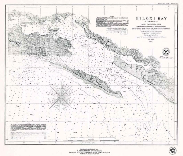 1858 Nautical Map of Biloxi Bay Mississippi - 16" x 20" Matte is backordered and will ship as soon as it is back in stock.