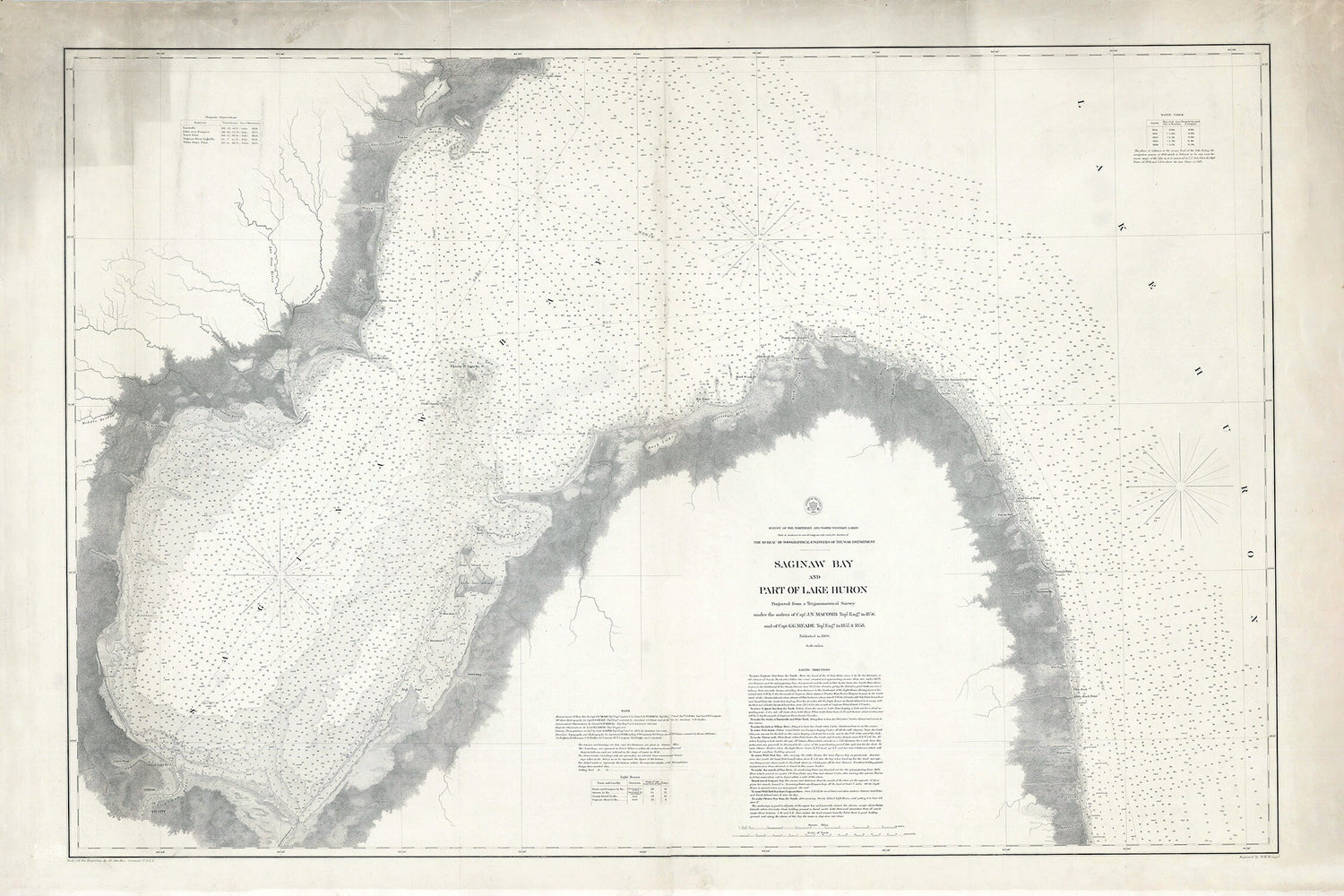 1860 Nautical Chart Map of Saginaw Bay and Part of Lake Huron - Heavy Weight Matte is backordered and will ship as soon as it is back in stock.