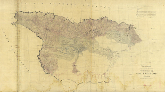 1874 Nautical Chart of Santa Cruz Island California Western End