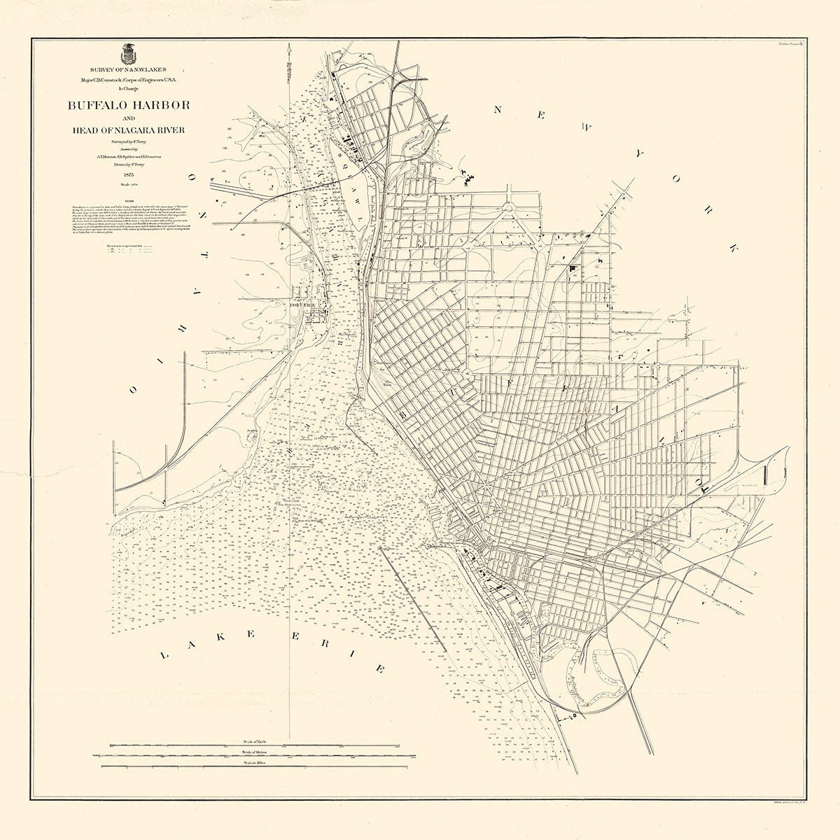 1875 Map of Buffalo Harbor New York and Head of Niagara River - 20" x 20" Matte is backordered and will ship as soon as it is back in stock.