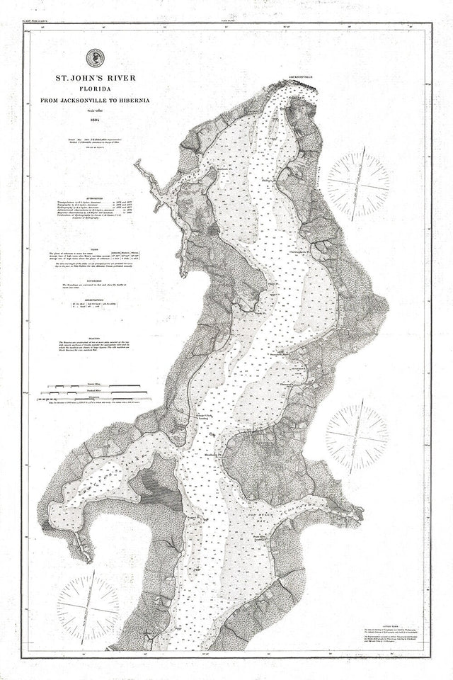 1884 Nautical Map of the Saint Johns River Florida Jacksonville to Hibernia
