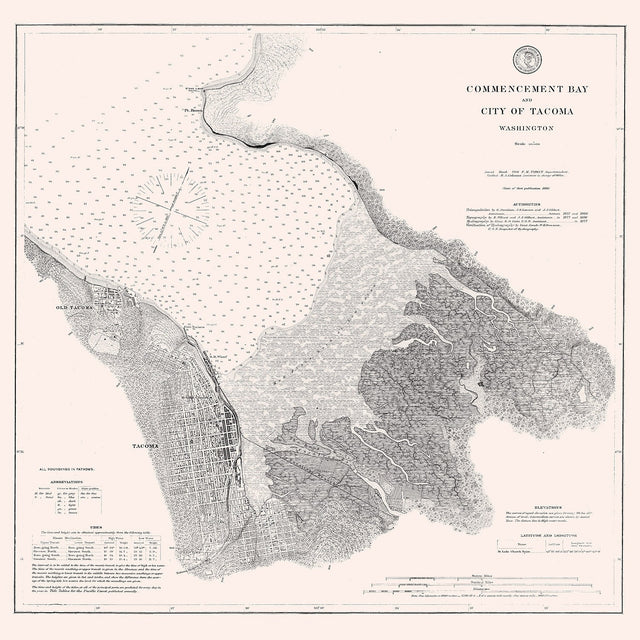 1888 Nautical Chart of Commencement Bay and City of Tacoma Washington