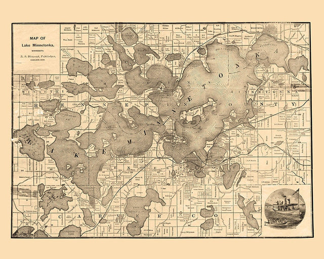 1893 Map of Lake Minnetonka Minnesota - 16"x20" Matte is backordered and will ship as soon as it is back in stock.