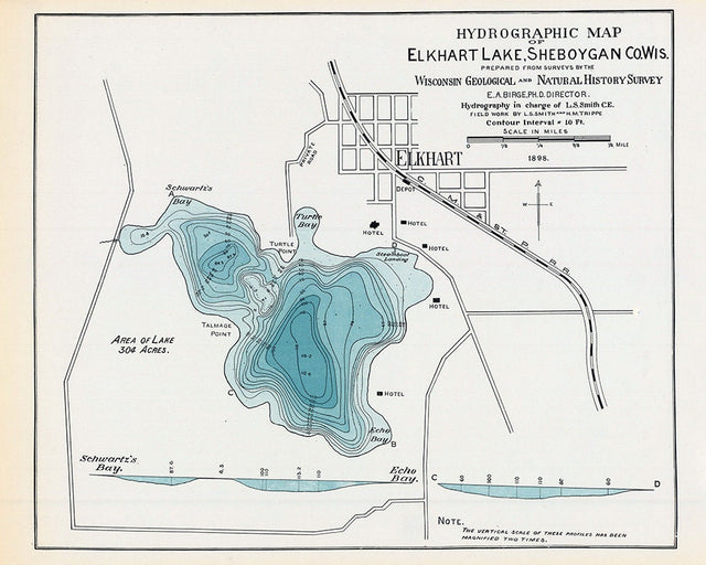 1898 Map of Lake Elkhart Sheboygan County Wisconsin - Heavy Weight Matte is backordered and will ship as soon as it is back in stock.