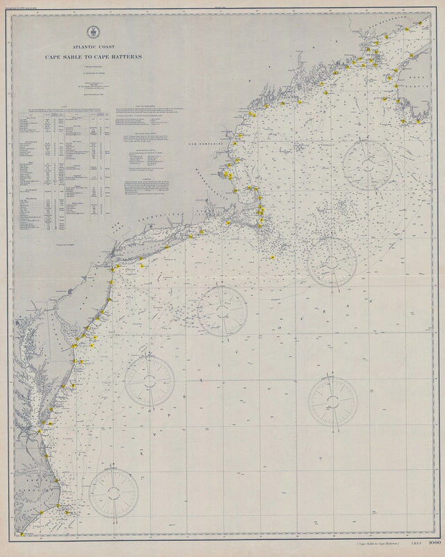 1906 Nautical Map of Cape Sable to Cape Hatteras