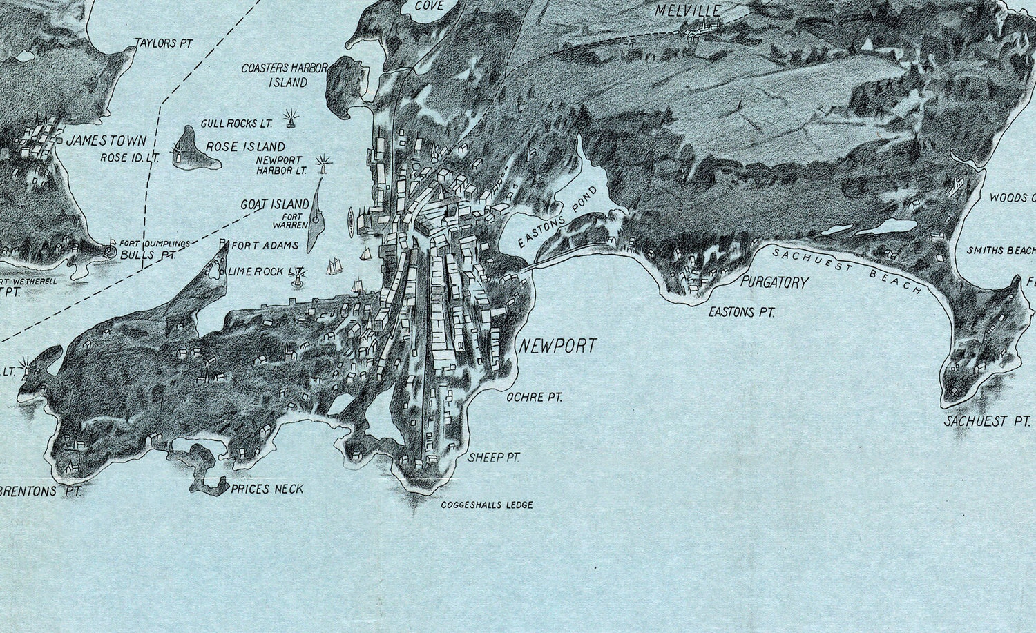 1907 Panoramic Map of Narragansett Bay Bristol County Rhode Island