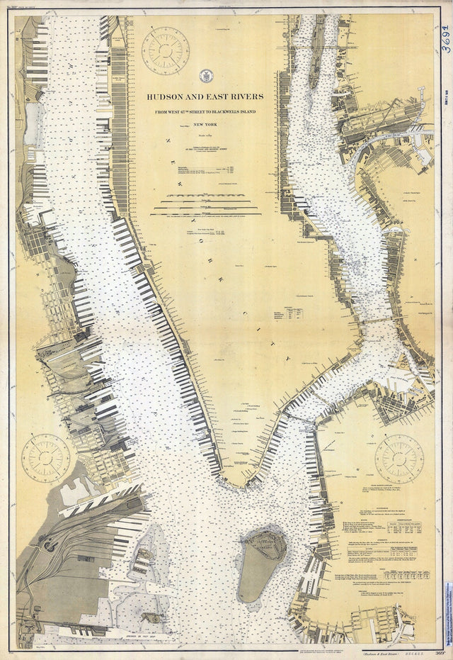 1919 Nautical Chart Map of the Hudson and East Rivers New York Long Island