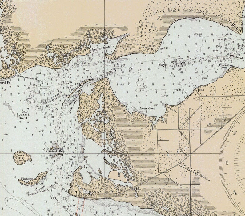 1930 Nautical Map of San Carlos Bay & Caloosahatchee River Florida