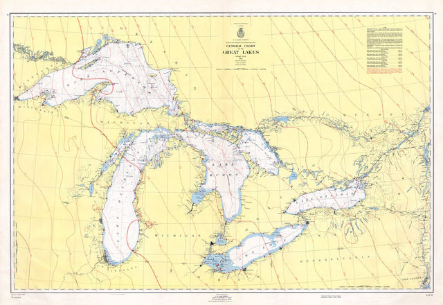 1955 Nautical Map of The Great Lakes