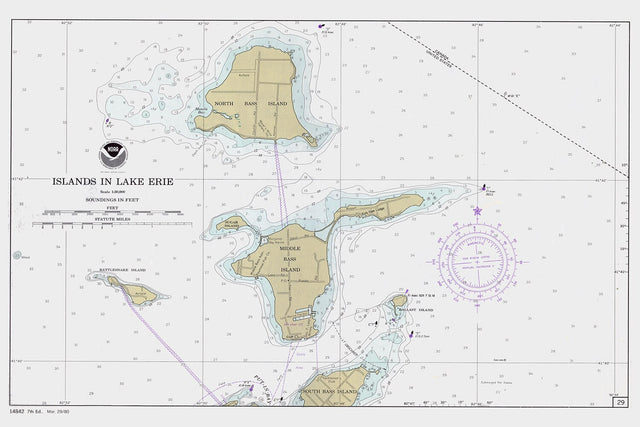1980 Nautical Map of North Bass and Middle Bass Island Lake Erie