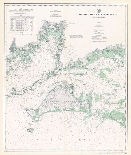 1913 Nautical Map of Marthas Vineyard Sound & Buzzards Bay Mass