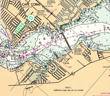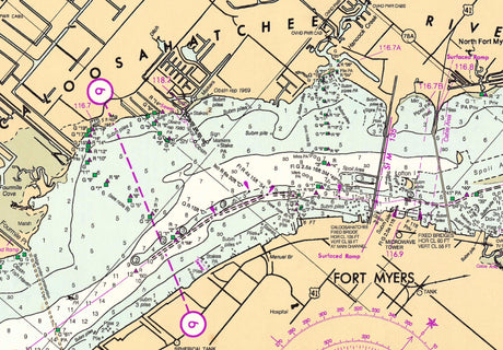 1996 Nautical Chart of Caloosahatchee River Fort Myers Florida