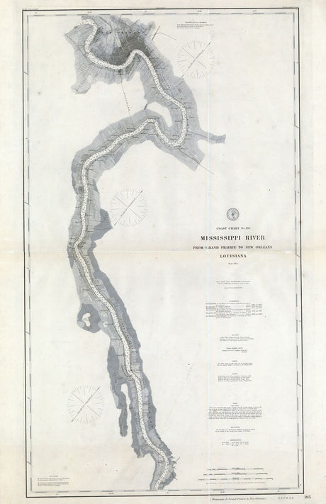 1897 Map of Mississippi River Grand Prairie to New Orleans