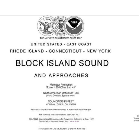 2017 Nautical Map of Block Island Sound and Approaches