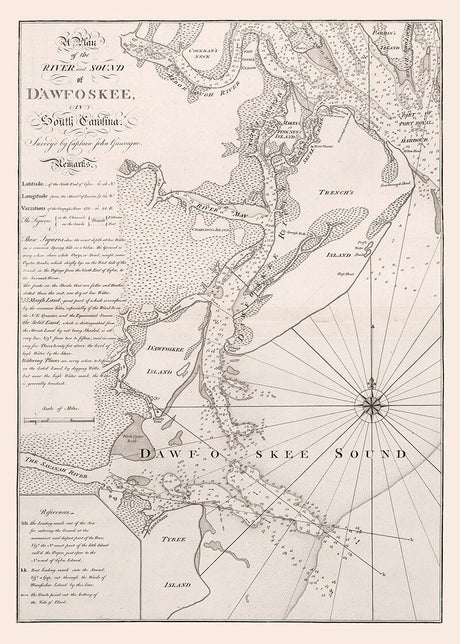 1776 Nautical Chart of Dawfoskee Sound South Carolina