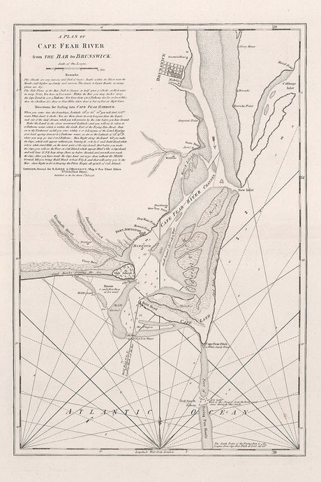 1776 Nautical Chart of Cape Fear River to Brunswick Georgia