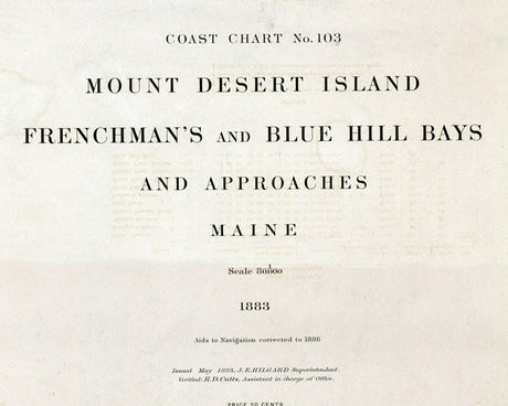 1886 Nautical Chart Map of Mount Desert Island Blue Hill Bays Maine