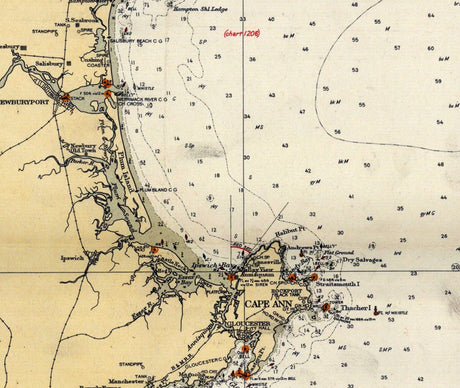 1933 Nautical Chart Map of Cape Elizabeth to Cape Cod