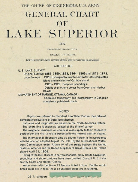 1932 Nautical Map of Lake Superior