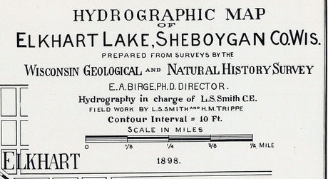 1898 Map of Lake Elkhart Sheboygan County Wisconsin
