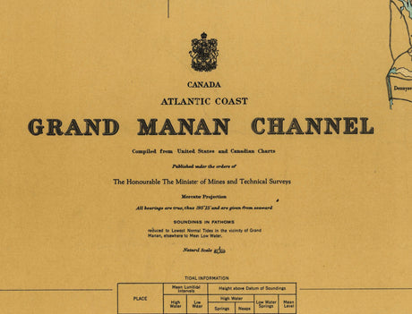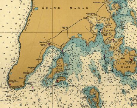 1950 Nautical Chart of Grand Manan Channel Maine