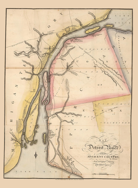 1813 Map of the Detroit River and Adjacent Country
