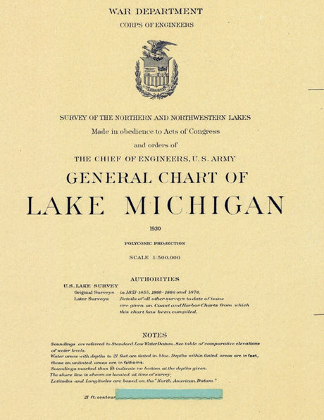 1930 Nautical Map of Lake Michigan