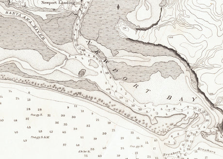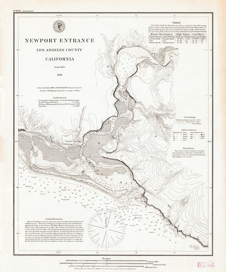 1878 Nautical Chart of Newport Entrance Newport Bay California