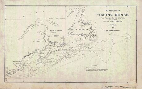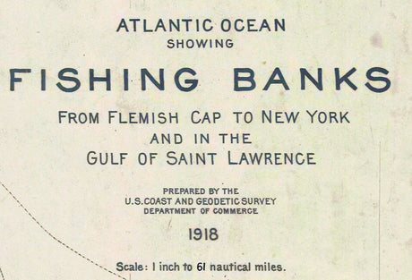 1918 Nautical Chart Map of Atlantic Ocean Fishing Banks New York to Gulf of St Lawrence