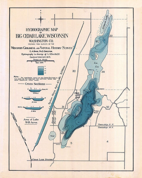 1899 Map of Big Cedar Lake Washington County Wisconsin