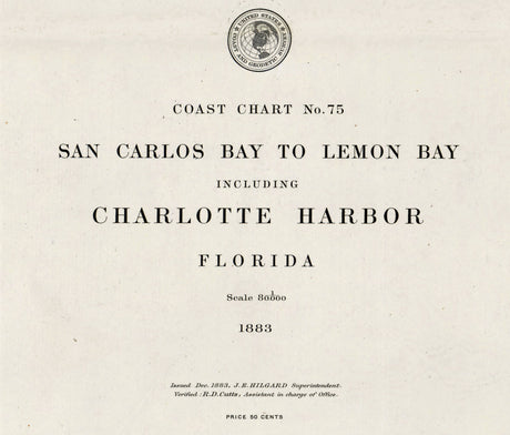 1883 Nautical Map of San Carlos Bay to Lemon Bay Florida Charlotte Harbor Sanibel Captiva