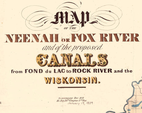 1839 Map of the Neenah or Fox River Wisconsin and Canals