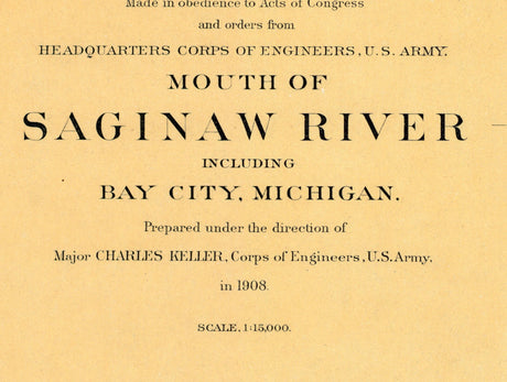 1908 Nautical Chart Saginaw River Bay City Michigan