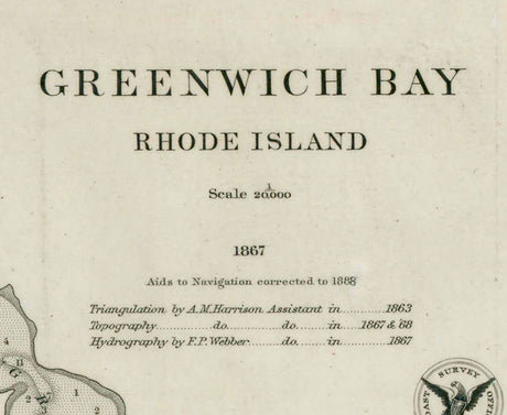 1867 Nautical Chart of Greenwich Bay Rhode Island