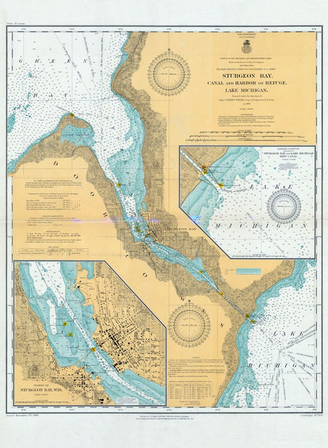 1908 Nautical Map of Sturgeon Bay Lake Michigan