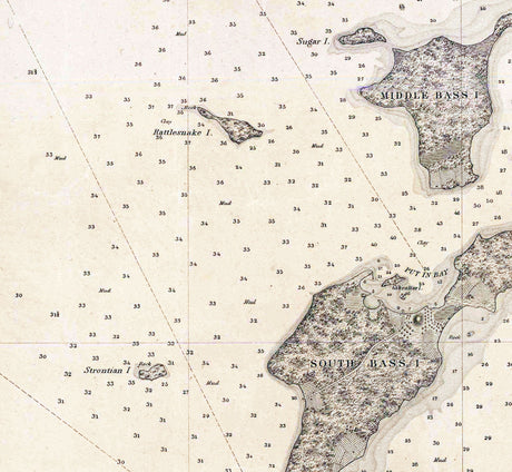 1917 Nautical Map Lake Erie Islands Sandusky Bay Ohio