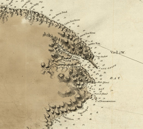 1800 Nautical Chart of St Lawrence River Gaspesie Quebec Canada