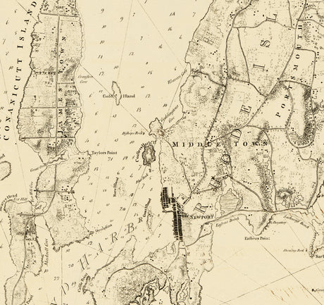 1887 Nautical Map of Newport Harbor Narragansett Bay Rhode Island