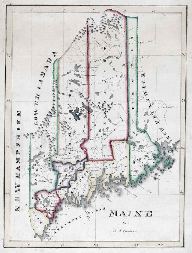 1820s Map of Maine Oxford Washington Canada - 15"x20"Matte is backordered and will ship as soon as it is back in stock.