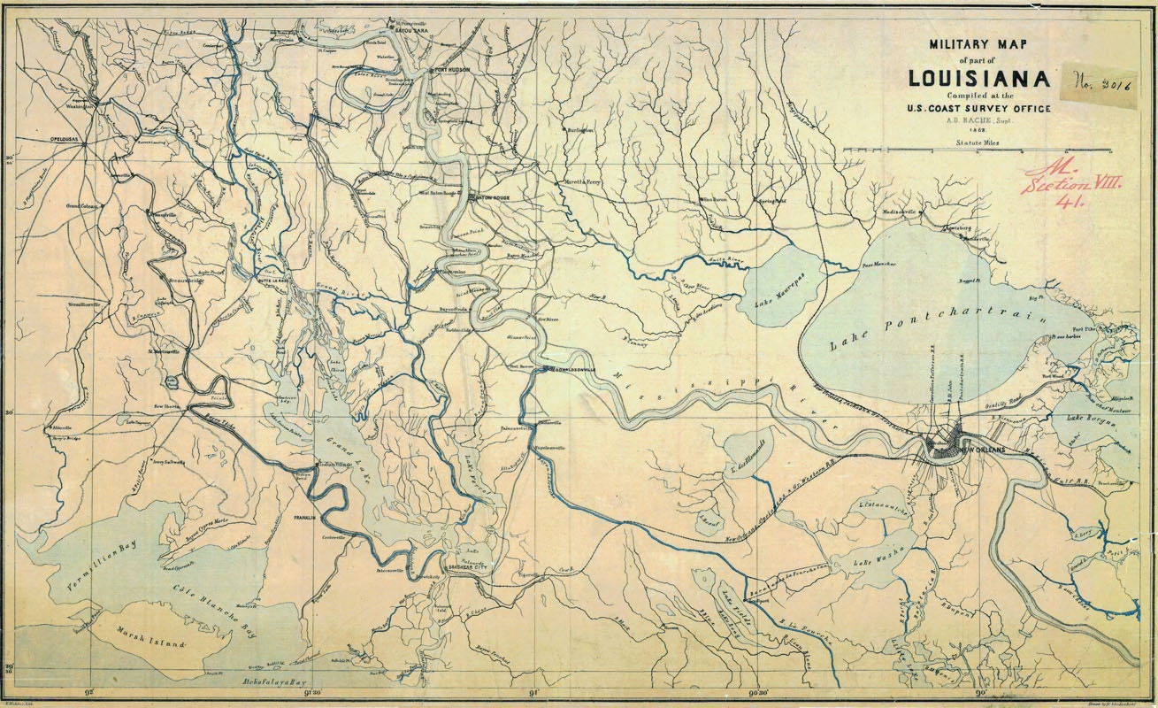 1863 Military Map of Louisiana and New Orleans
