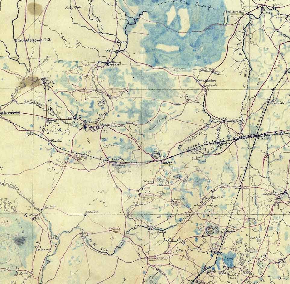 1864 Map of Northern Florida Jacksonville Saint Augustine