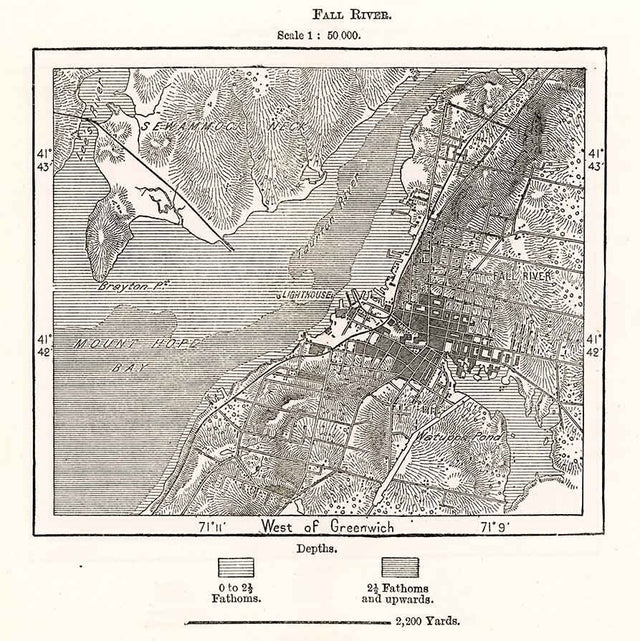1885 Map of Fall River Mount Hope Bay Massachusetts