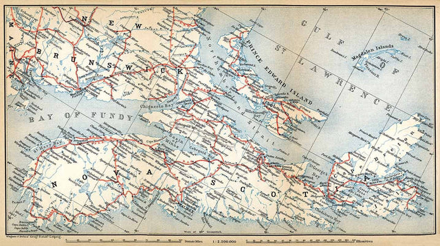 1907 Map of Nova Scotia Prince Edward Island & New Brunswick Canada