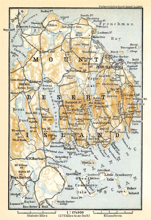 1909 Map of Mount Desert Island Maine Bar Harbor by Baedeker - 11"x17"Matte is backordered and will ship as soon as it is back in stock.