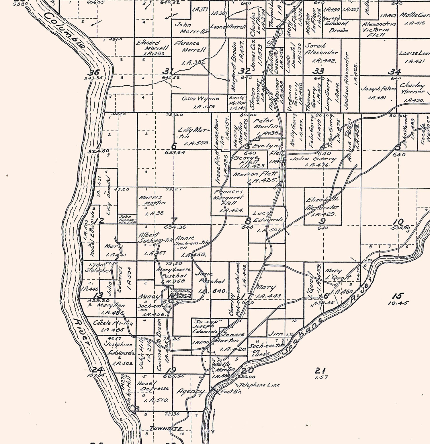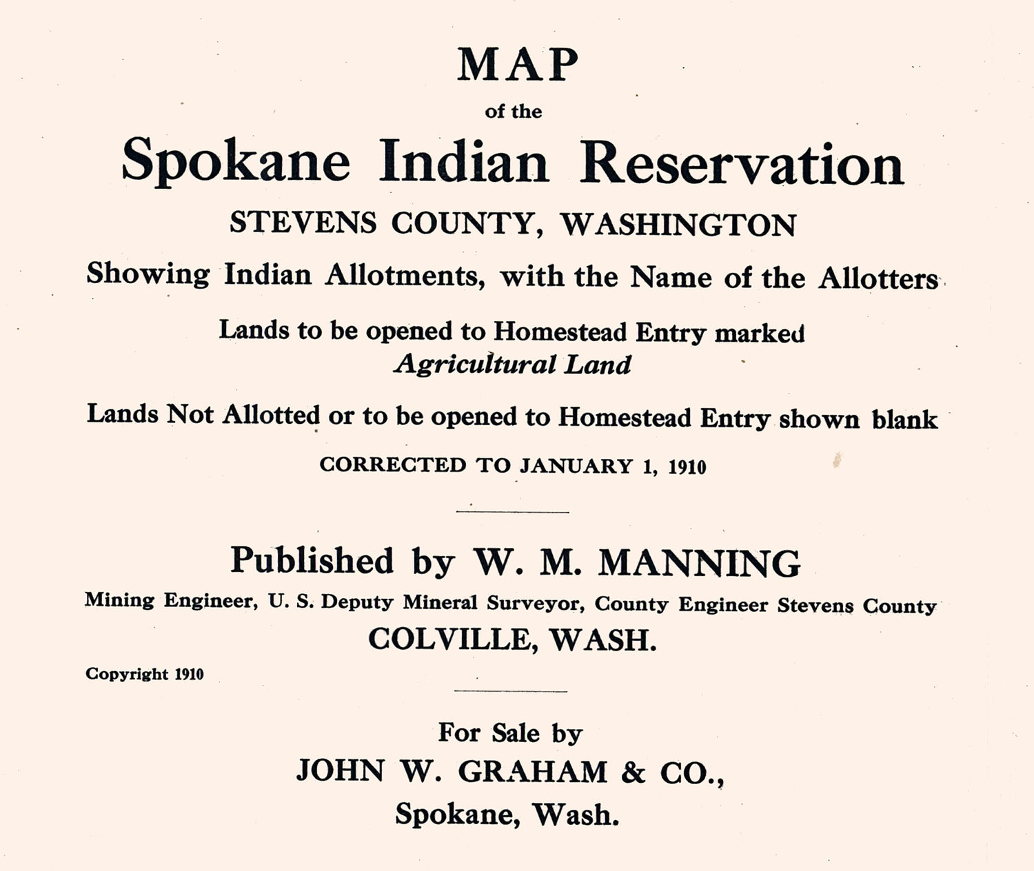 1910 Map of Spokane Indian Reservation Stevens County Washington