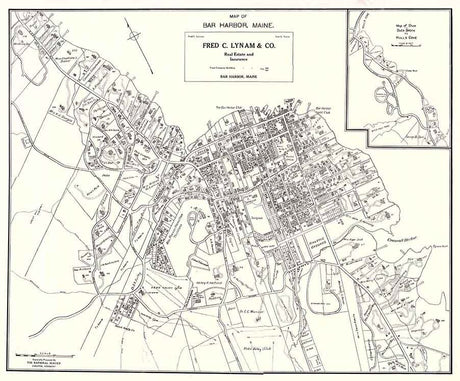 1935 Map of Bar Harbor Maine Duck Brook Hulls Cove