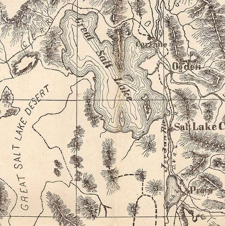1890 Map the Great Salt Lake Sevier River & Great Salt Lake Desert