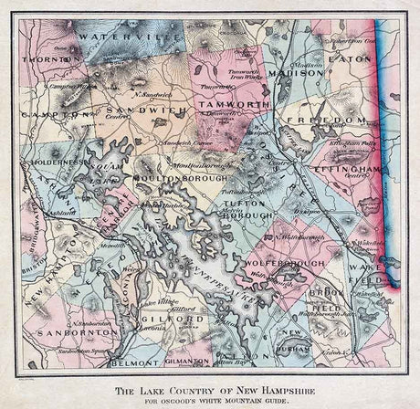 1870s Map of The Lake Country New Hampshire Lake Winnepesaukee & Squam Lake