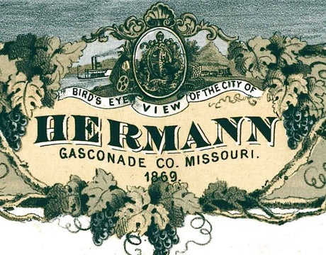 1869 Panoramic Map of Hermann Gasconade County Missouri