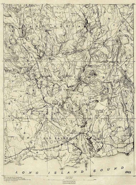 1893 Map of Old Lyme Rogers Lake Laysville Connecticut Long Island Sound